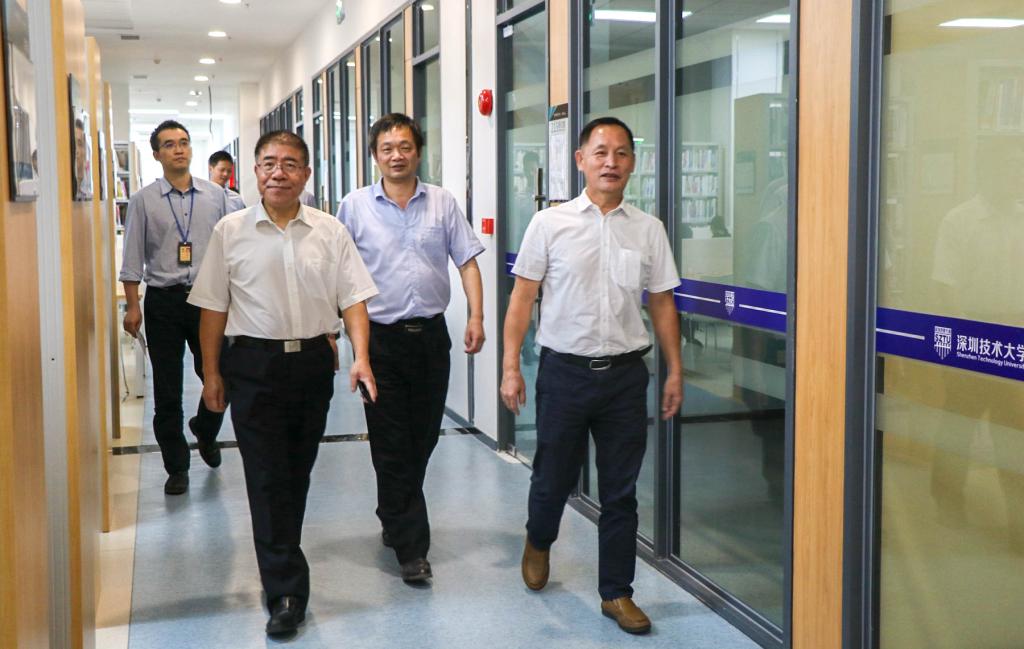 在签约仪式结束后,中国电信深圳分公司领导一行参观了我校图书馆和食堂。实地对我校的基础设施情况进行了考察。