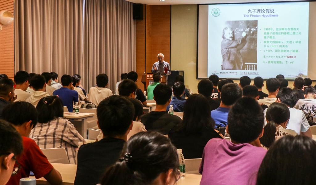 沈教授讲述了光伏的历史和太阳能电池的工作原理,向师生们介绍了多位理论奠基人和发明现代太阳电池的科学家。