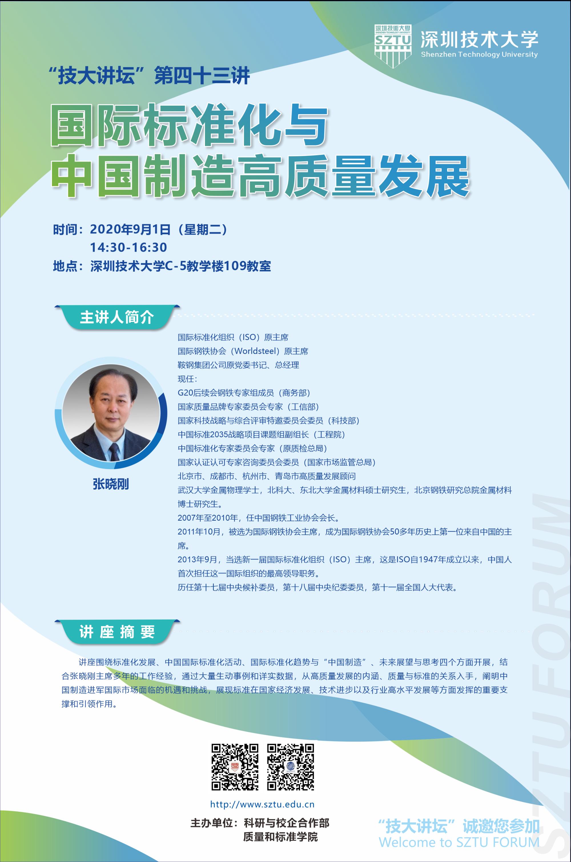 讲座围绕标准化发展、中国国际标准化活动、国际标准化趋势与“中国制造”、未来展望与思考四个方面开展,结合张晓刚主席多年的工作经验,通过大量生动事例和详实数据,从高质量发展的内涵、质量与标准的关系入手,阐明中国制造进军国际市场面临的机遇和挑战,展现标准在国家经济发展、技术进步以及行业高水平发展等方面发挥的重要支撑和引领作用。