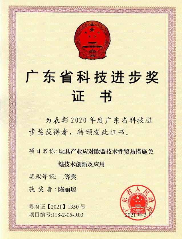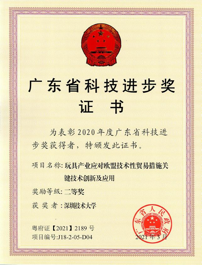 2021年5月20日,从广东省科学技术厅获悉,我校质量和标准学院黄理纳教授作为第一完成人和新材料与新能源学院陈丽琼教授作为第三完成人完成的科技项目“玩具产业应对欧盟技术性贸易措施关键技术研发与应用”荣获2020年度广东省科技进步二等奖。