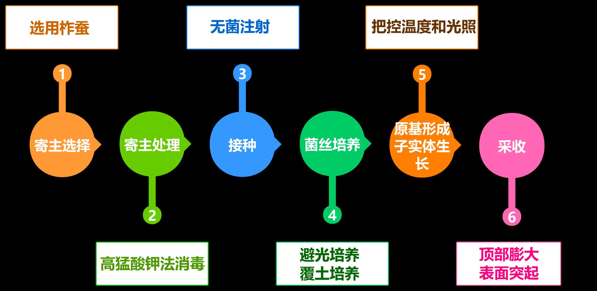 液-固两相发酵工艺的富锌蛹虫草子实体人工培养技术通过选育优势虫草菌种、优化发酵工艺、改良栽培技术的方法,达到缩短培育时间、高效富集锌元素及100%生物利用的目的。在最佳碳氮比和光照的培养条件下,培育出高效富集锌元素的蛹虫草子实体,采用液、固双富集的策略,强化蛹虫草对锌元素的富集作用,同时结合蛹虫草本身含有的活性成分,充分开发虫草资源,使其发挥蛹虫草和微量元素的双重功能。此外,该项目改进常规的蛹虫草的培养基配比可得到高产出的虫草菌质发酵物,实现虫草子实体和固体发酵物培养基的双重利用,减少废料的产生,达到更高的生物利用度。