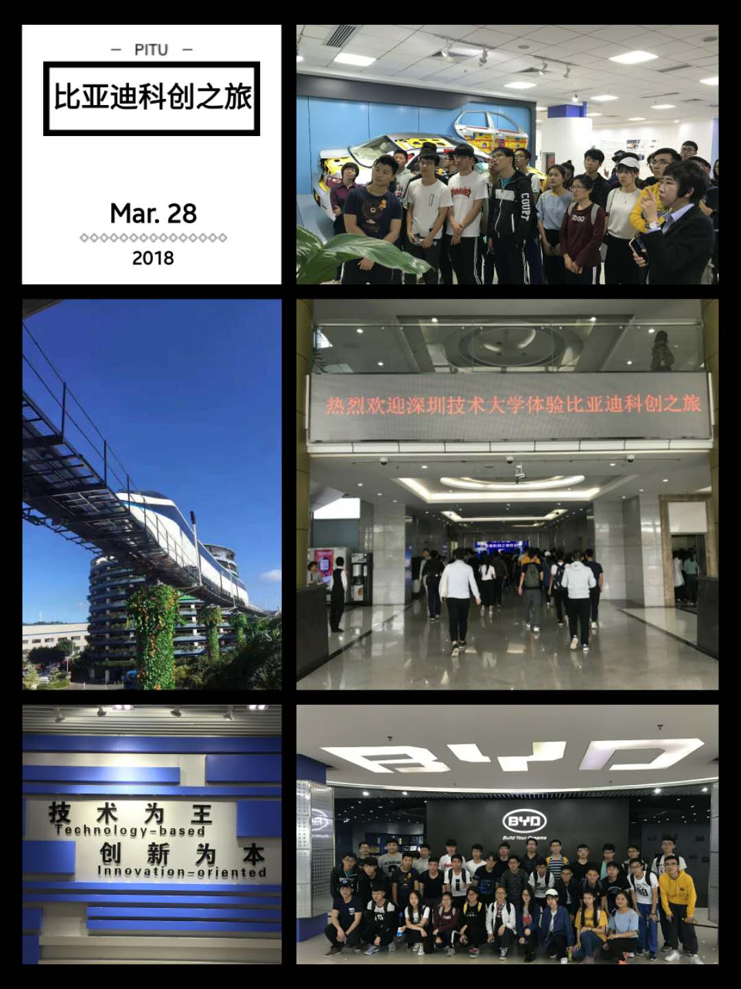 带头,我校45位师生于3月28日下午参加了“2018比亚迪科创之旅”。在比亚迪总裁办集团接待人员的耐心讲解中,我校师生先后参观了比亚迪展厅及汽车生产车间、试乘新能源车辆,体验先进制造魅力,切身感受民族企业科技创新实力及企业文化。参观完毕后在比亚迪总部会议室举办了交流会,比亚迪集团总裁办高级研究员及研究院工程师出席了会议。会上介绍了比亚迪发展历史及未来规划,师生对比亚迪“技术为王创新为本”的理念表示十分赞同,在会后的提问环节上,学生及老师就自动驾驶、云轨与地铁比较优势、机器视觉、新能源车电池结构等问题与工程师进行了讨论,体现出我校师生“困知勉行,笃学不倦”的匠人精神。