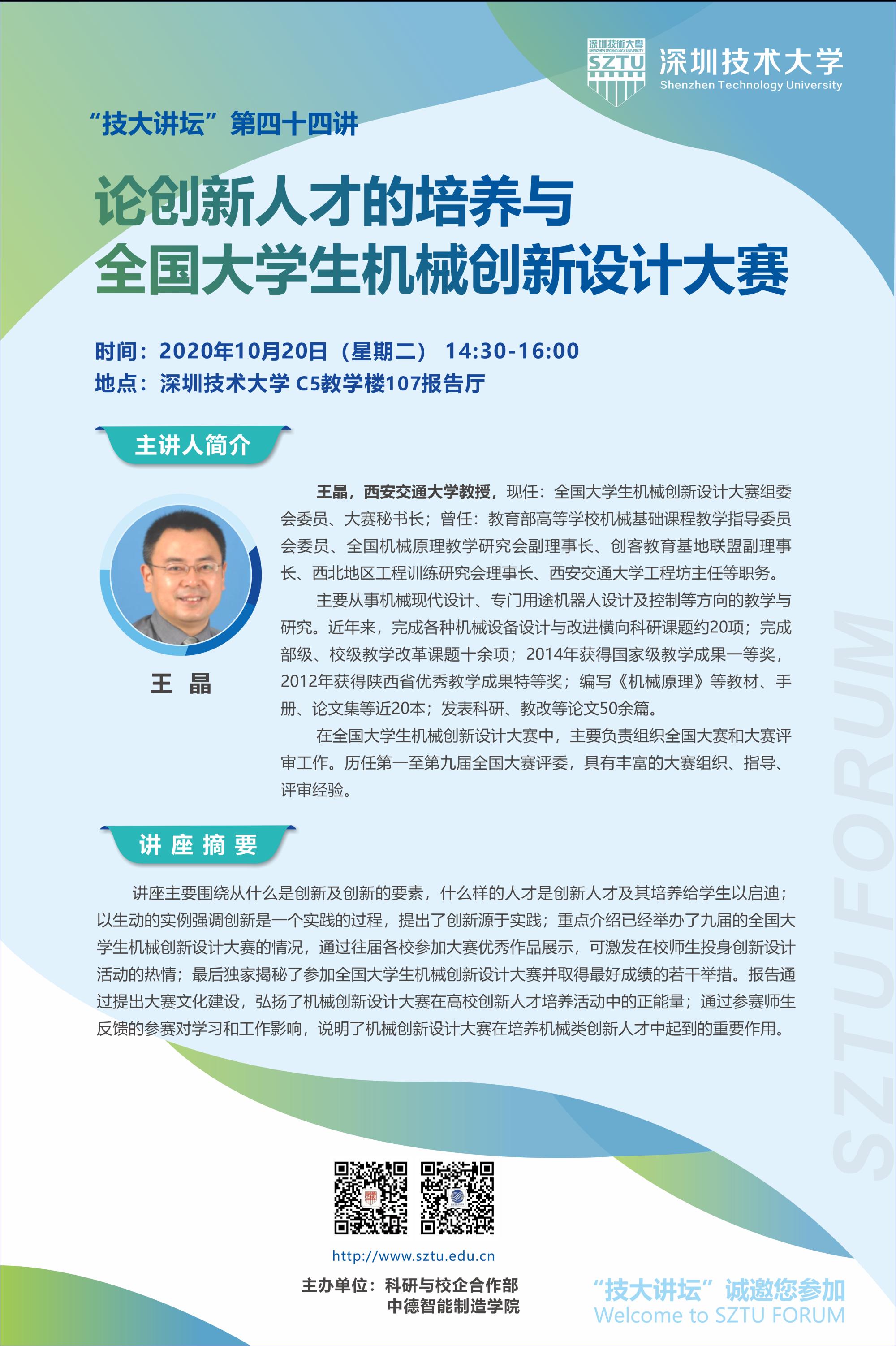 主题:论创新人才的培养与全国大学生机械创新设计大赛
