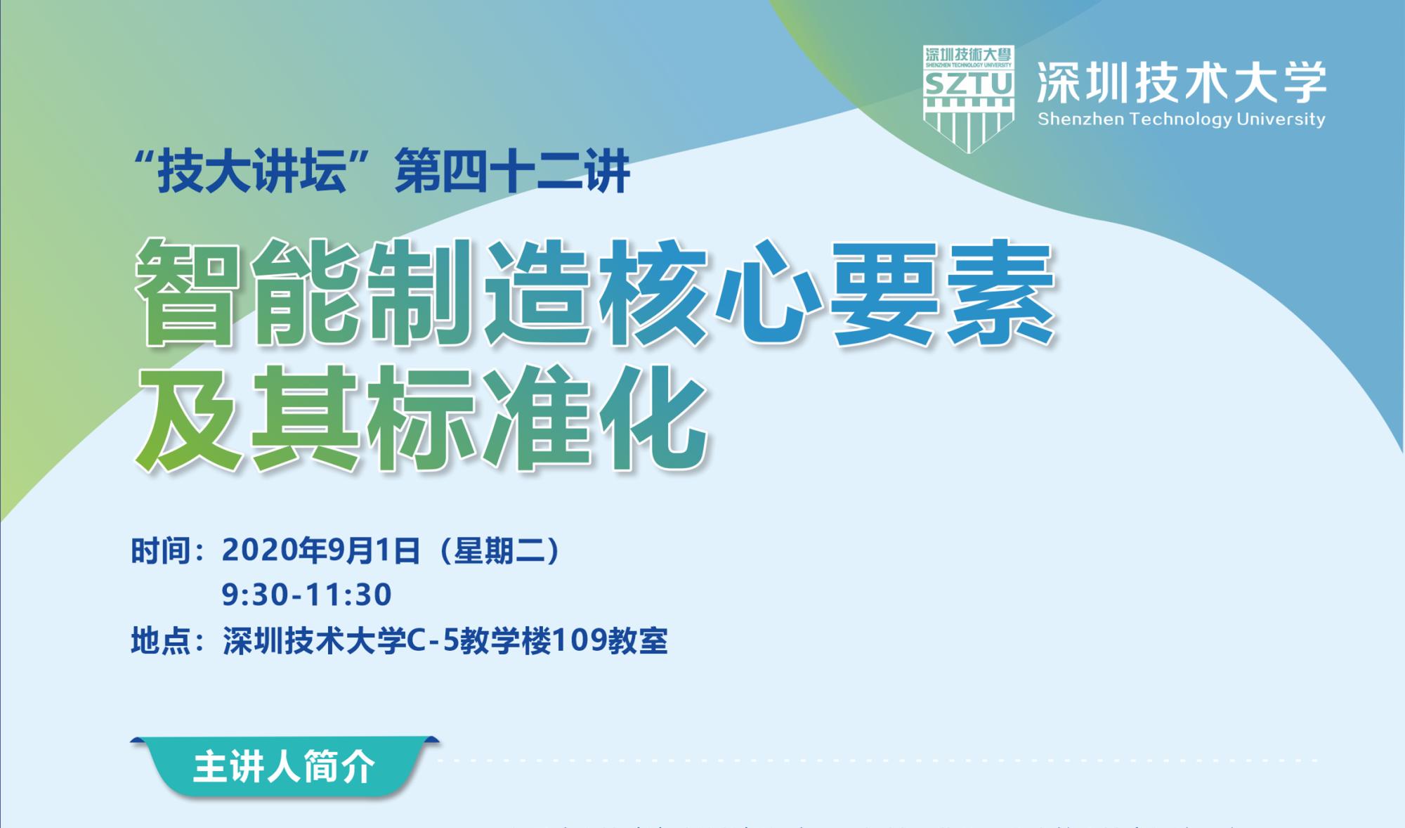 讲座预告:“技大讲坛”第四十二讲“智能制造核心要素及其标准化